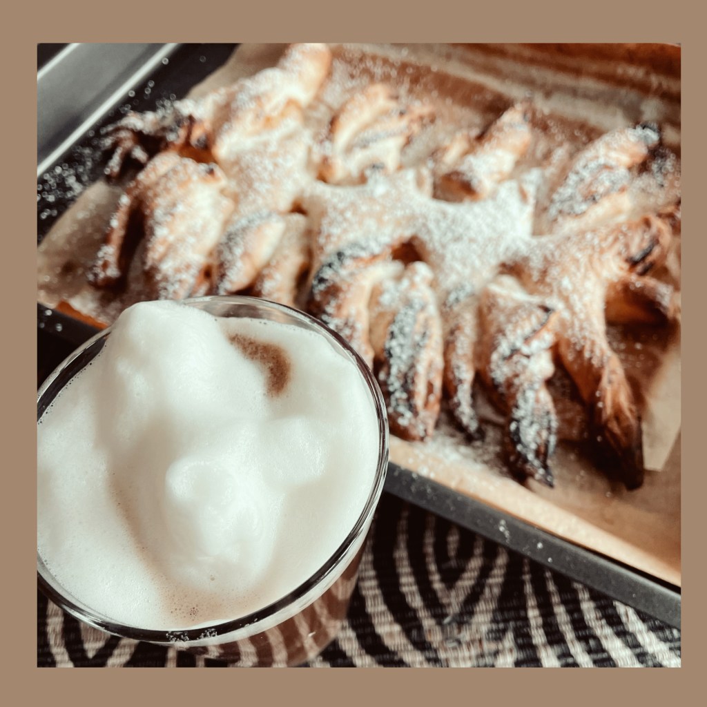 PS: Bei der pikanten Vorspeisenvariante einfach den Teig belegen, wie eine Pizza. Ich habe ihr Sauerrahm genommen und den Teig bestrichen, danach Lachsstücke, Schinken oder einfach nur mit Gemüse belegt. Etwas geriebenen Käse darüber und dann den anderen Blätterteig darauf und einschneiden. Nach dem Backen geniessen.