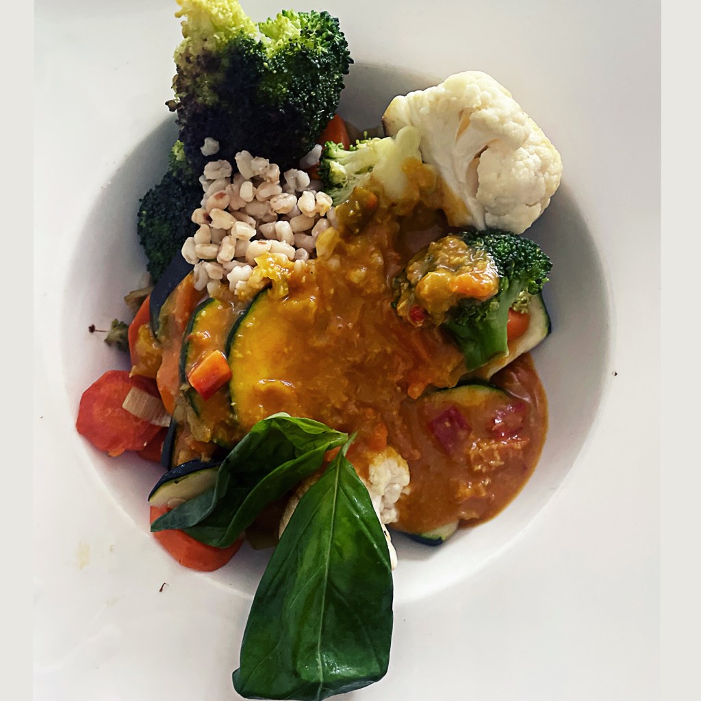 Kokosmilch darüber und mit köcheln lassen.