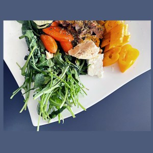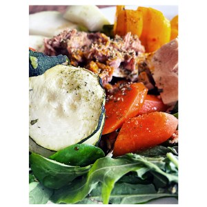 Salat waschen und am Teller anrichten. Marinade aus Balsamico Essig und Olivenöl anrichten. Lauch dazu und anschliessend, Karotten, Zucchini, Kohlrabi und Paprika darüber verteilen. Thunfisch in die Mitte und mit Kräutersalz, frischem Oregano, Petersilie, Thymian und Basilikum würzen.